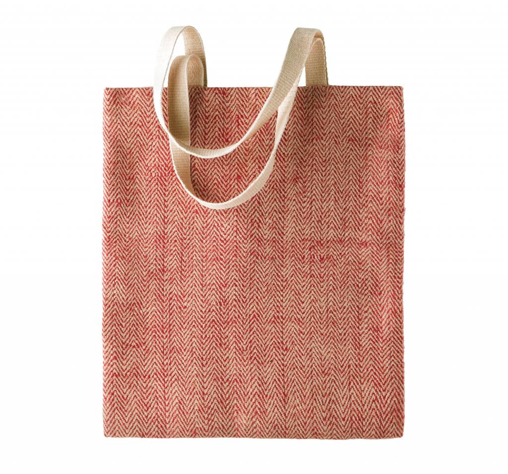Zachte jute tas van geverfde draden. Katoenen hengsels.