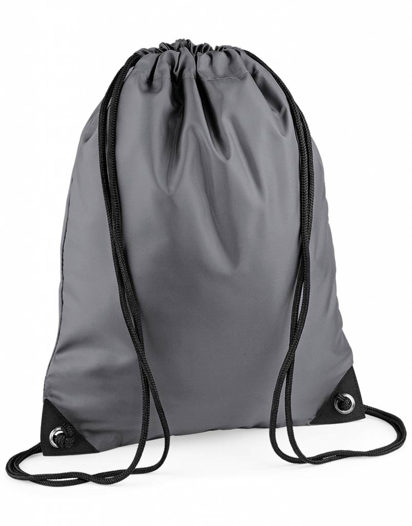 100% polyester (210D) waterafstotend materiaal verstevigde hoeken in zwart met ringogen, voorzien van een rijgkoord Capaciteit: 11 Liter Afmeting: 34 x 45 cm.