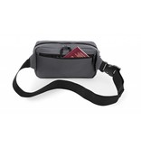 100% polyester (600D) Verstelbare riem Achterzak met rits Binnenzak met gaas Uitgang koptelefoon Sleutelring Inhoud : 2,5 liter Afmetingen : 24 x 13,5 x 9 cm Maximum borduuroppervlak : 9 ronde hoepel Maximum drukoppervlak : 14 x 8 cm