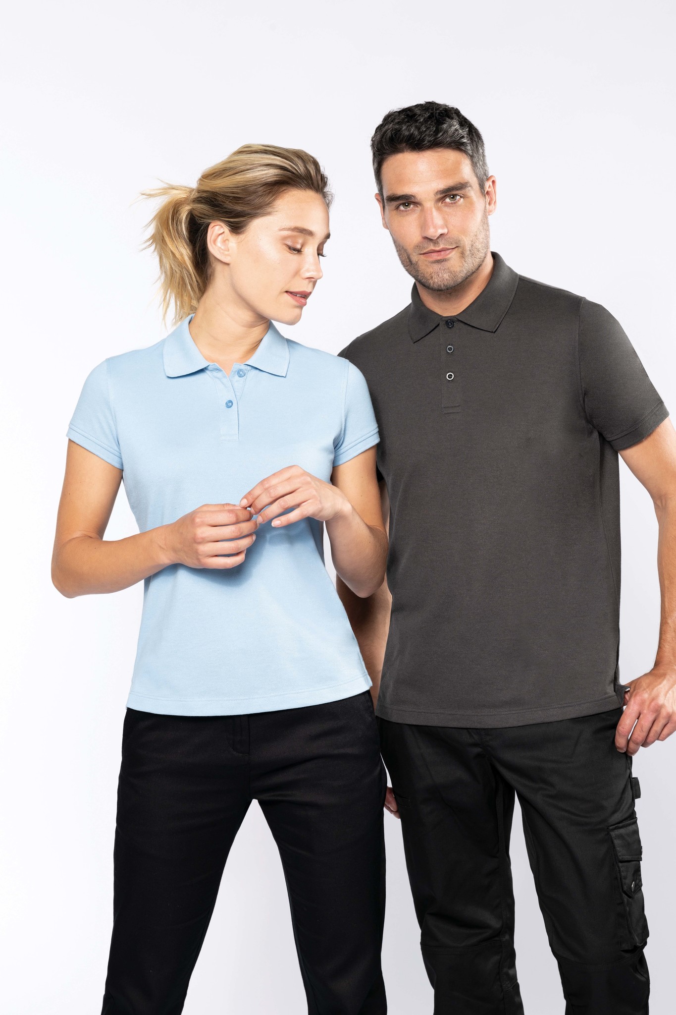 65% polyester / 35% gekamd katoen. Piquétricot. Wasbaar op 60 °C. Anti-bacteriële en anti-pluisbehandeling. Knooplijst met 2 ton-sur-ton knopen. Kraag in ribboord met contrasterend nektape aan de binnenkant. Afwerking in ribboord aan de mouwuiteinden. Zijsplitten met contrasterende bies voor meer comfort. Dubbel stiksel aan de onderkant. Geschikt voor professioneel gebruik.