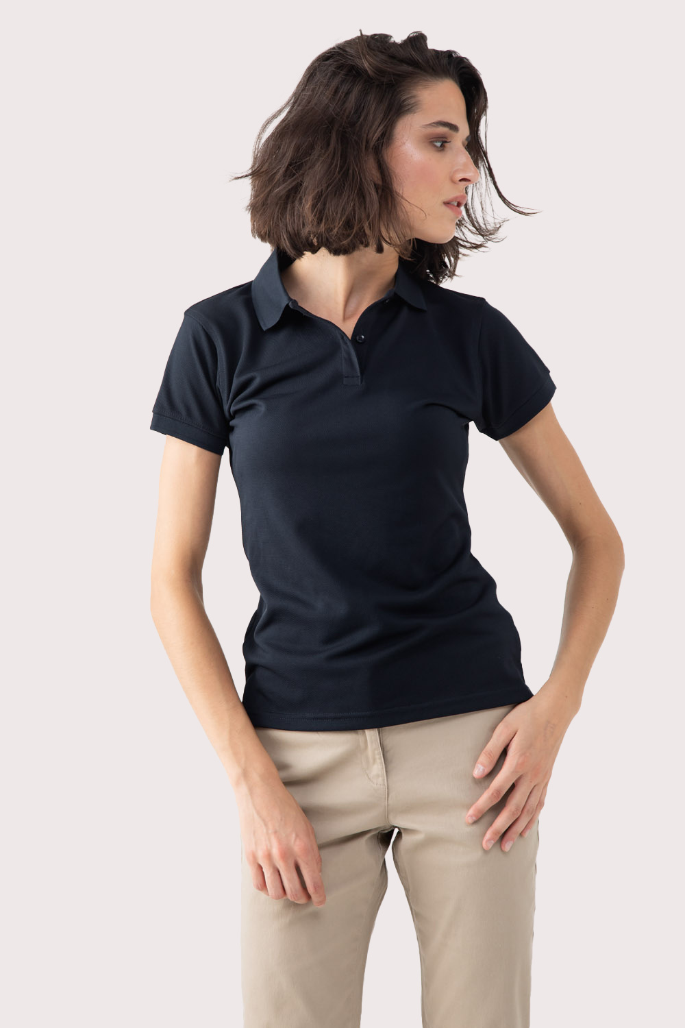 100% Coolplus® polyester. Micropiqué. Klassieke snit. Knooplijst met twee ton-sur-ton knopen. Platte gebreide kraag. Zijsplitjes. Mouwuiteinden afgewerkt met ribboord.