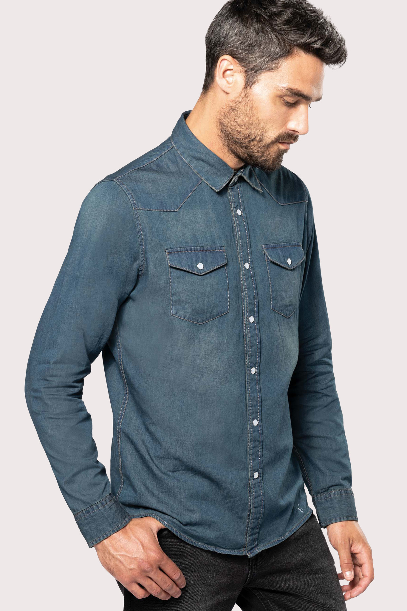 100% katoen. Gewassen met enzymen. Getailleerde snit. Fantasie drukknopen. 2 borstzakken met overslag en drukknoop. Inzetstukken aan de rug en voorkant. Mouwuiteinden met drukknopen. Dit product kreeg een speciale behandeling om het er verouderd te laten uitzien. Dit ambachtelijke procedé maakt dat er kleurverschillen zijn tussen de producten, waardoor elk stuk uniek is.