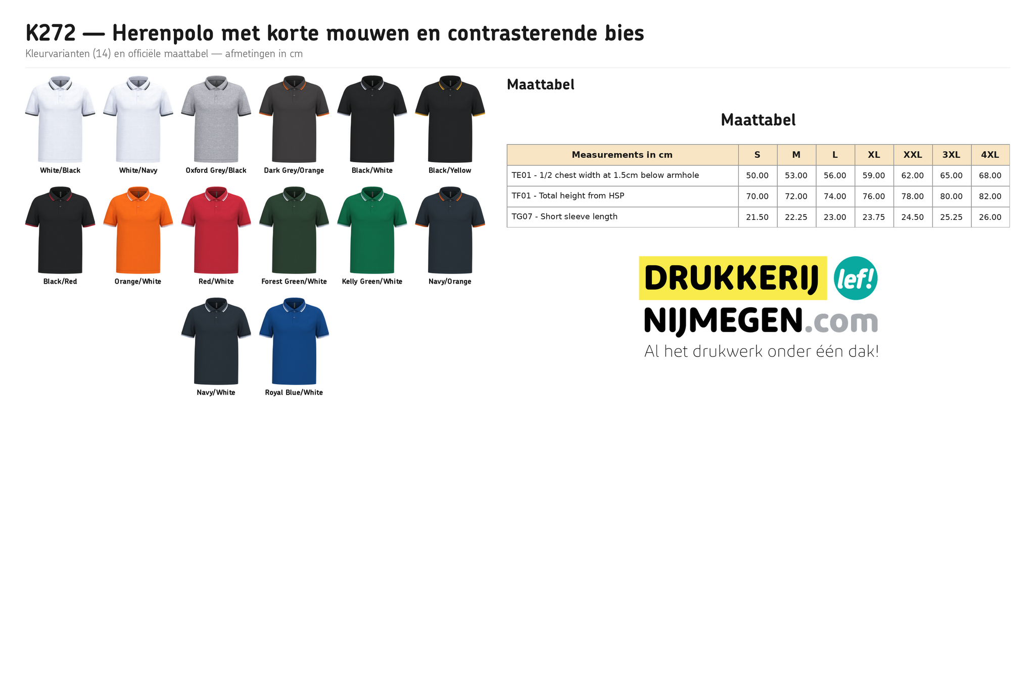 Het gladde piqué-oppervlak van deze polo biedt een uitstekend drukvlak om te bedrukken met logo of eigen ontwerp. Of u nu bedrijfskleding, werkkleding of evenementenkleding zoekt — de K272 is een populaire keuze. Textieldrukkerij Kwestievanlef in Nijmegen verzorgt het bedrukken van uw kleding, ook in kleine oplages vanaf 1 stuk. Vraag vandaag nog een vrijblijvende offerte aan.