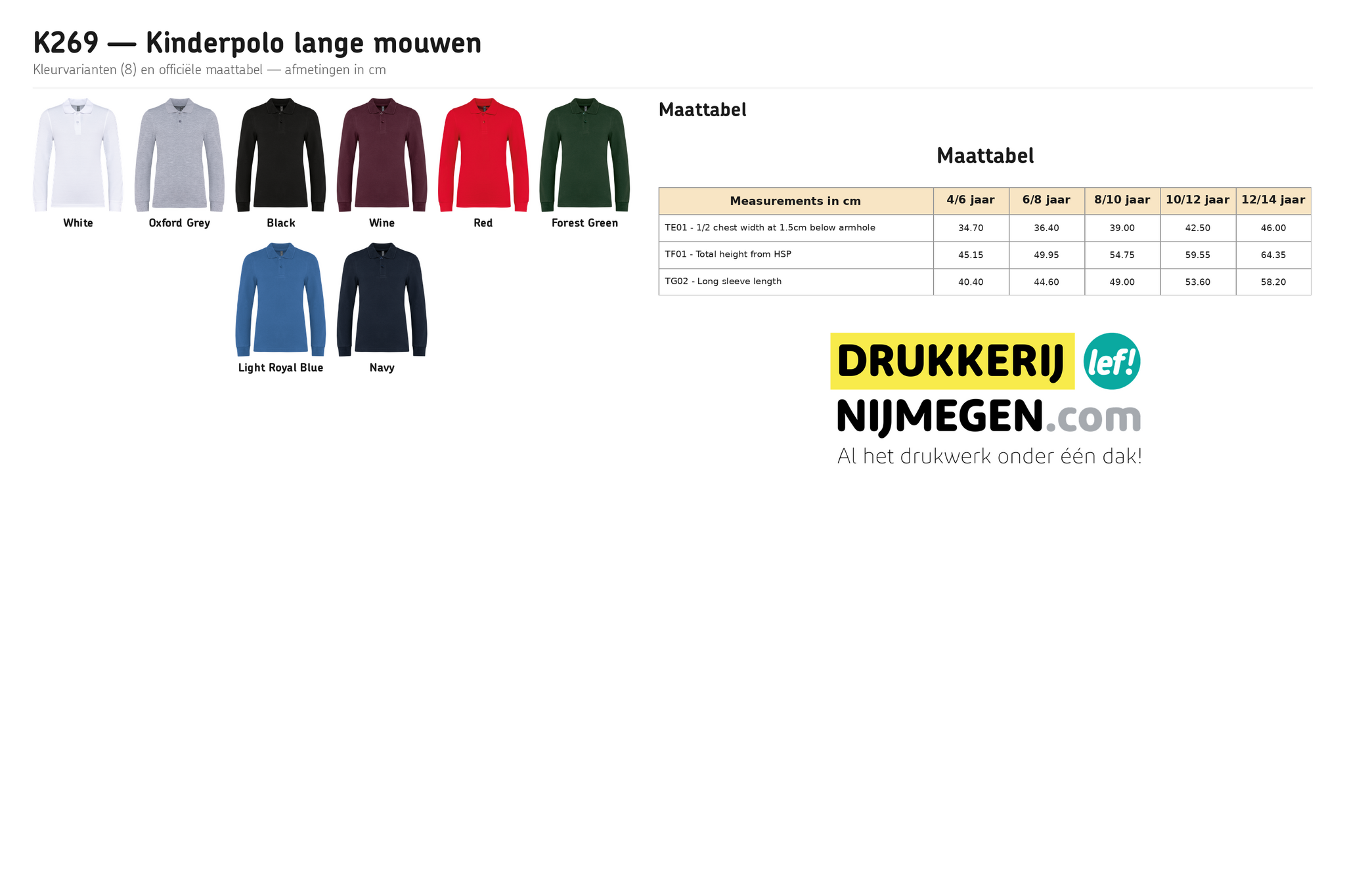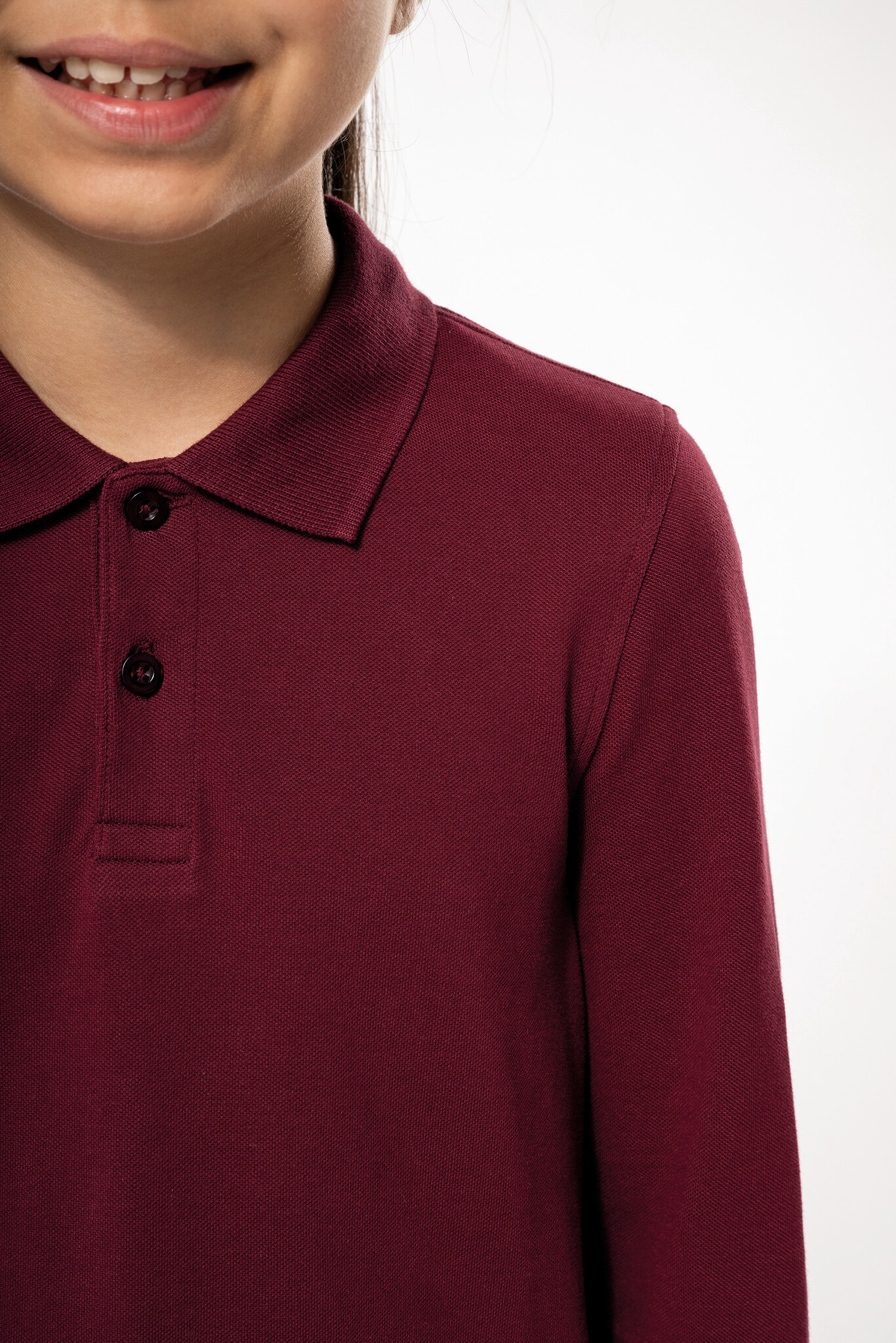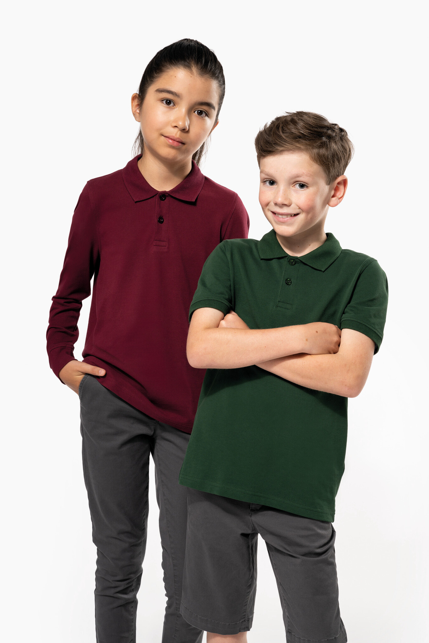 Kinderpolo bedrukken in Nijmegen? Kariban K269 lange mouwen polo, 180 g/m², 100% gekamd katoen, piqué. OEKO-TEX® & PETA Vegan. Maten 4/6-12/14 jaar. 8 kleuren. Ideaal als teamkleding of schoolkleding met logo.