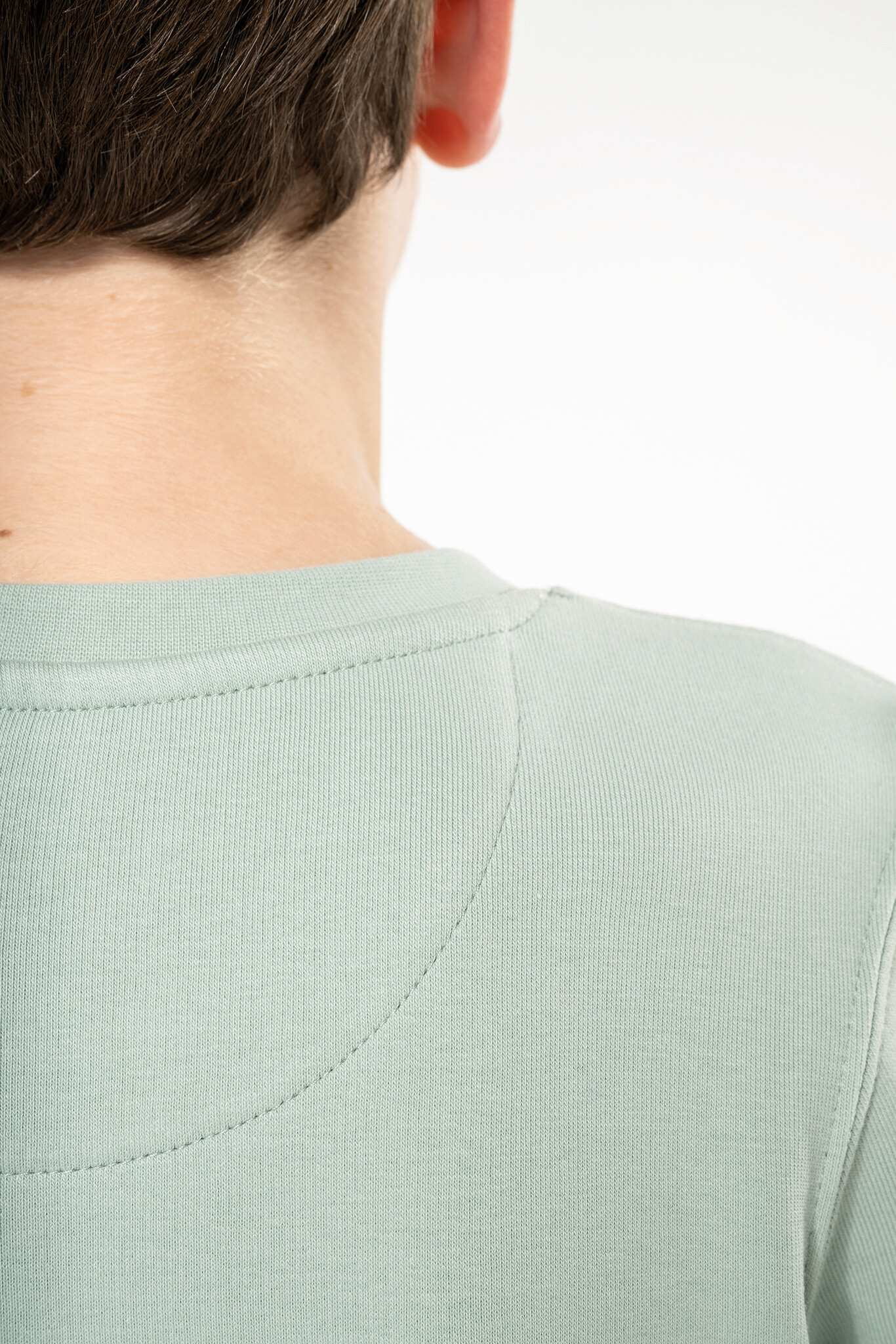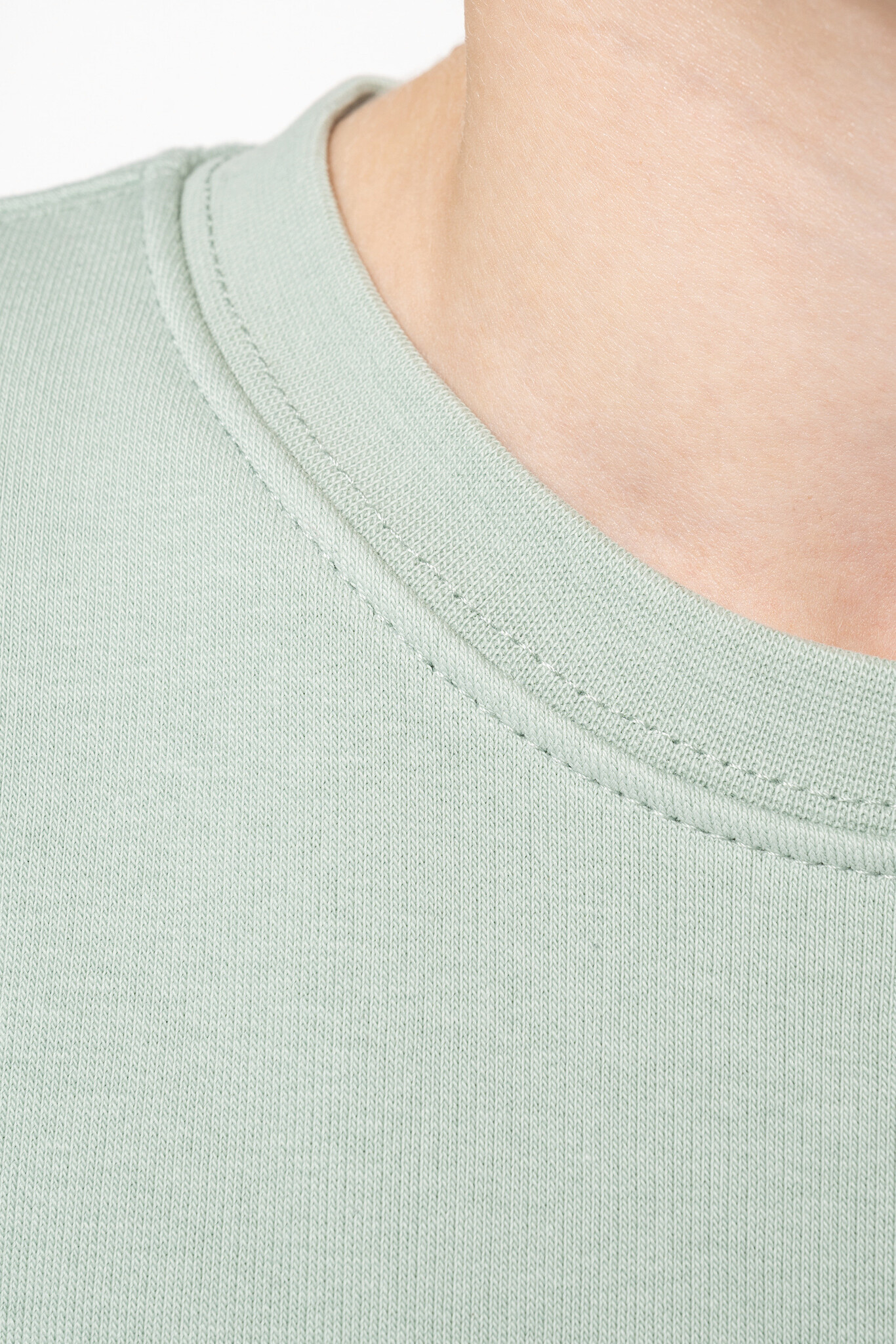 - Afwerking dubbel stiksel aan hals, mouwuiteinden en onderkant