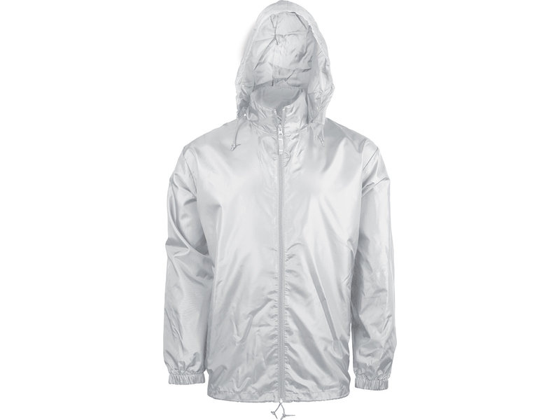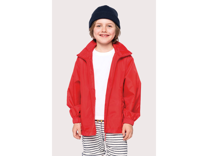 100% polyester. Toon op toon ritssluiting. Capuchon in de kraag met klittenbandsluiting. 2 voorzakken met ritssluiting. Elastische mouwuiteinden. Opvouwbaar volgens het K-Way® systeem.