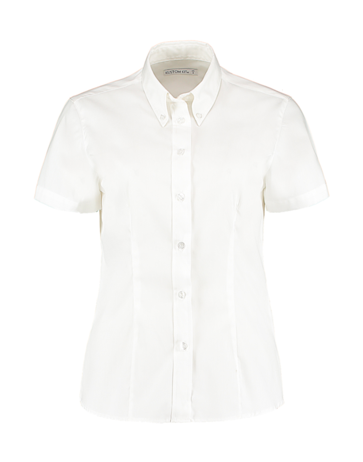 125 g/m² 85% Katoen, 15% Polyester button-down-kraag ingezette rug korte mouwen getailleerd model afgeronde onderzijde. gemakkelijk te strijken