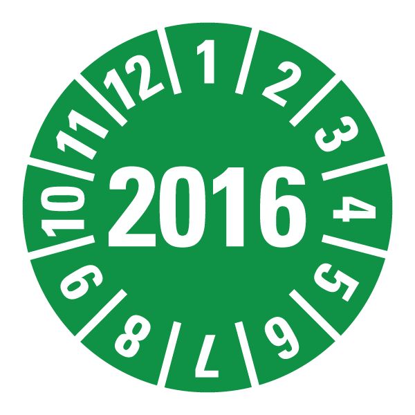 Keuringssticker rond met jaartal 2016 centraal geplaatst.