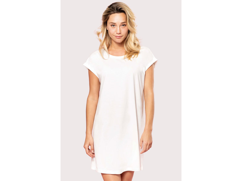 100% gekamd jerseykatoen (Light Grey Heather : 85% katoen / 15% viscose). Comfortabele snit. Brede halsopening met nektape en mouwopeningen afgewerkt met omslagen. Afgerond en dubbel stiksel onderaan. Geen merklabel in de kraag, maar enkel een maatlabel voor eenvoudige personalisatie.