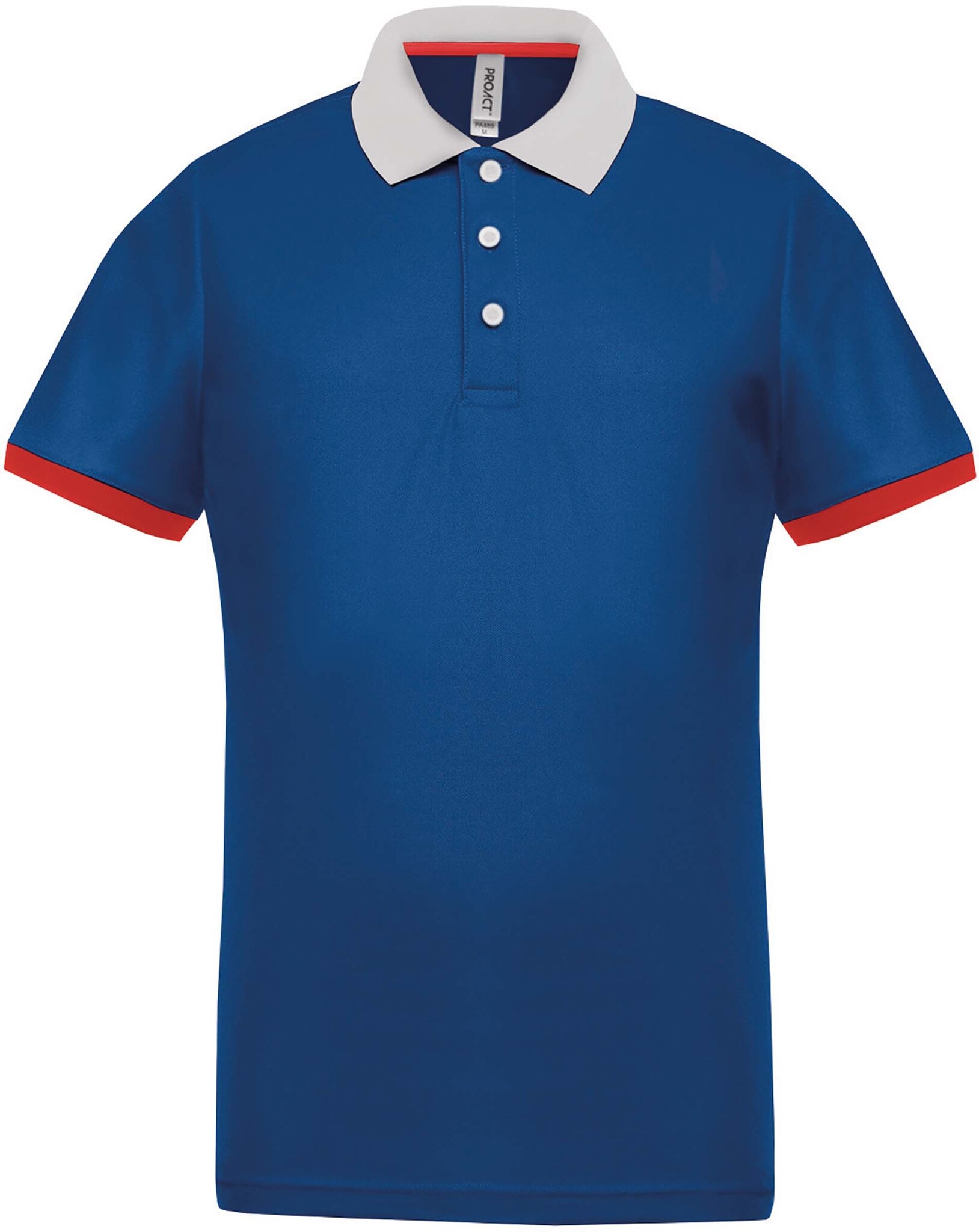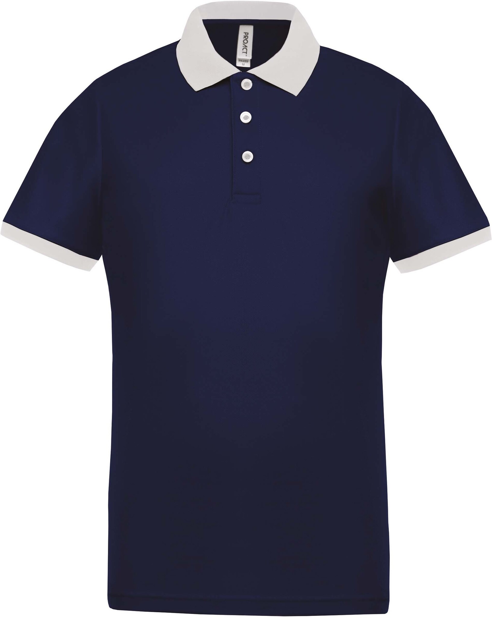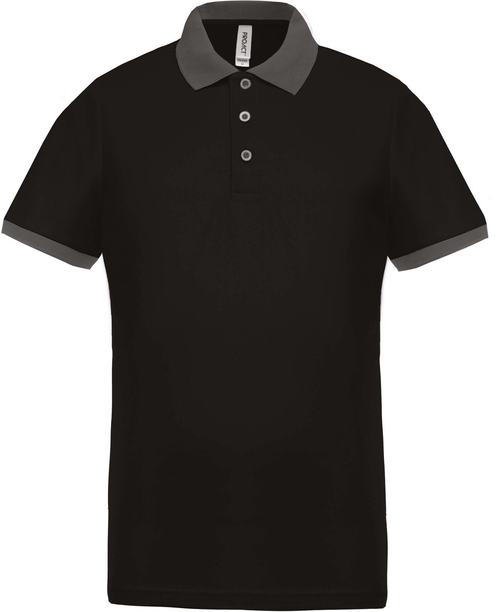100% piquépolyester Cool Plus®. Sneldrogende stof. Fitted pasvorm en moderne look. Kraag en mouwuiteinden in contrasterende ribboord. Knooplijst met 3 contrasterende knopen. Zijsplitten