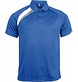 100% polyester. Sneldrogende stof. Inzetstukken in contrastkleur op de borst en mouwuiteinde. Kraag in rib 1x1. 2 toon op toon knoopjes. Afwerking met toon op toon overstiksels. Afwerking met dubbele stiksel onderaan en aan de mouwuiteinden.