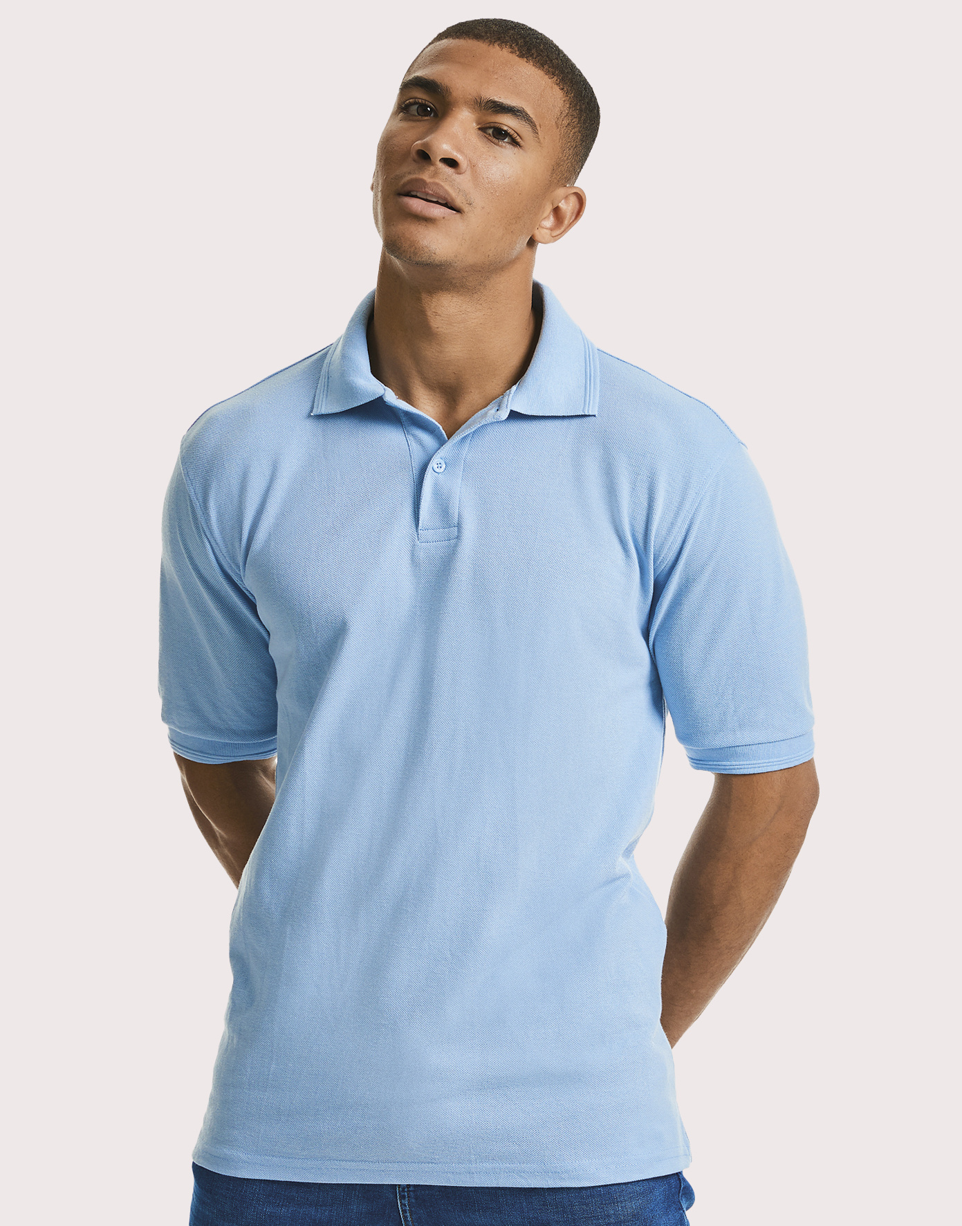 215 g/m² (White: 210 g/m²) 65% Polyester, 35% ringgesponnen piqué katoen gladgebreide kraag en armmanchetten voorzien van dubbel verstevigingsband halsboord verstevigde schoudernaden knoopsluiting met 2 gelijkgekleurde knoopjes Dubbele naden aan de zoom voorzien van zijsplitjes zwaar heavy duty materiaal machine wasbaar tot 60°C.
