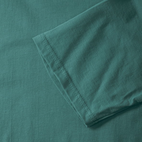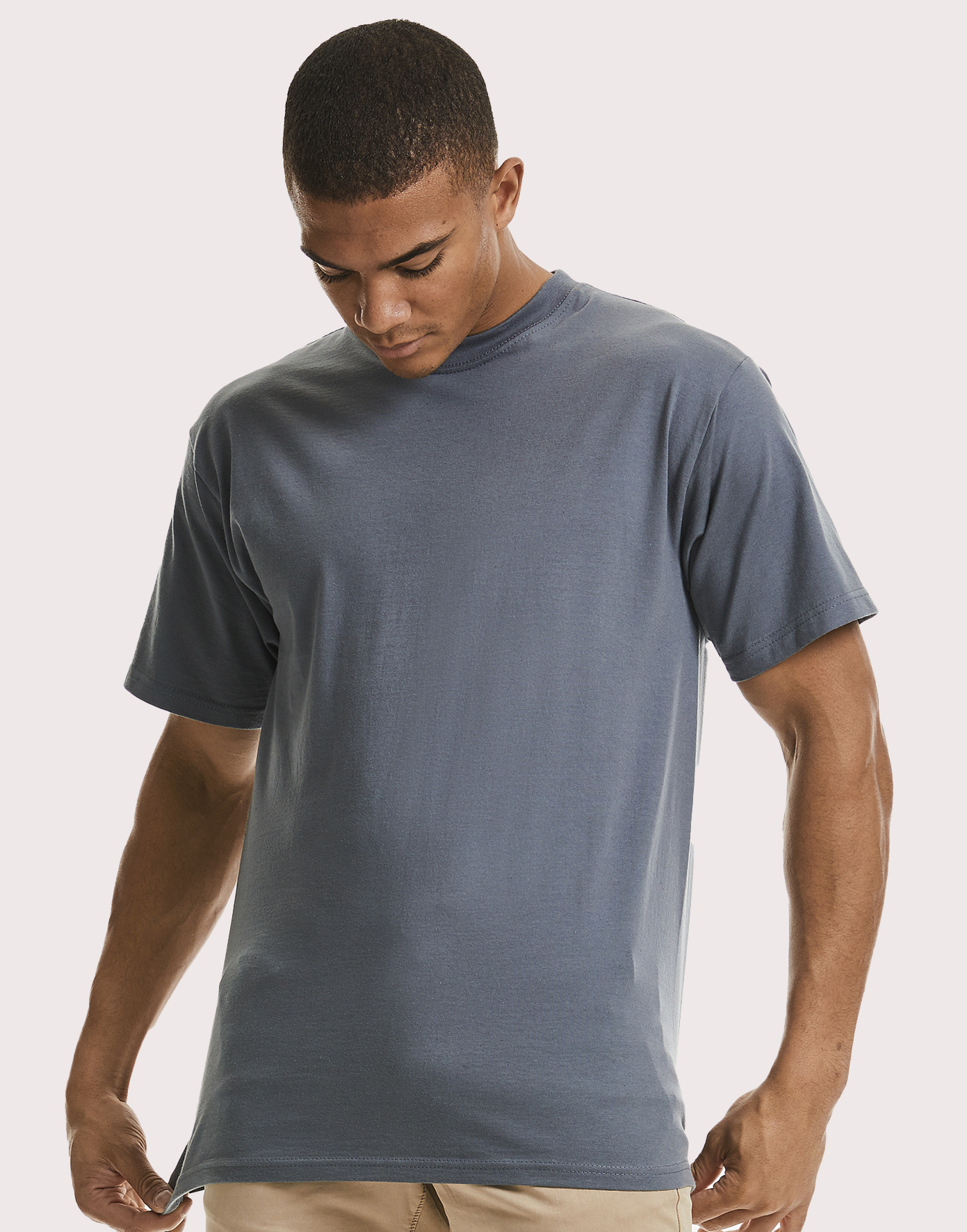 180 g/m² (White: 175 g/m²) 100% ringgesponnen gekamde katoen Light Oxford: 93% katoen, 7% polyester Ribgebreide rand lang de hals Schouder tot schouder nekband Dubbeldraads gestikt aan armen en boord Rondgebreid.