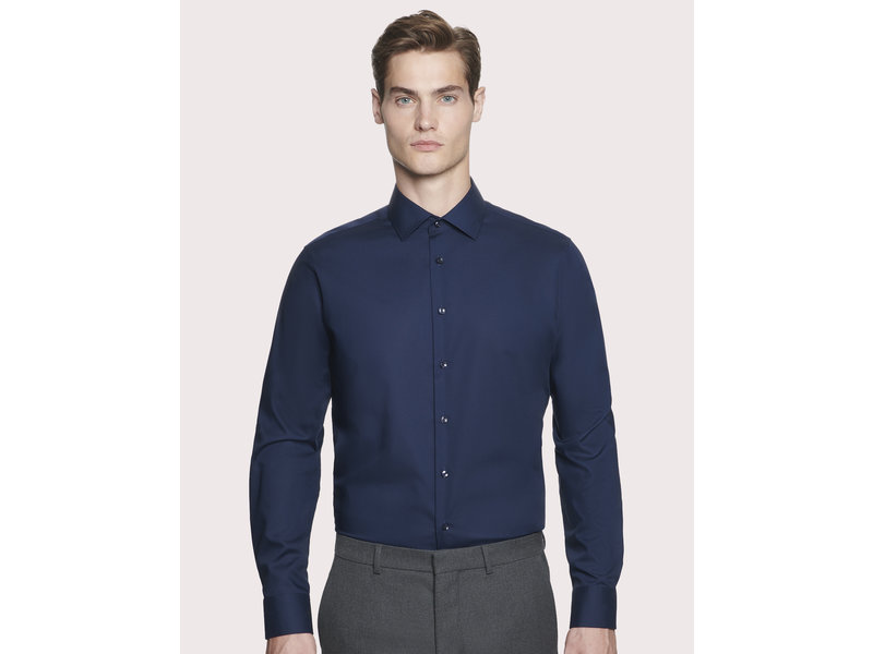 125 g/m² 100% katoen Kent kraag (dark blue gespreide kent kraag) Strijkvrij Getailleerd model Dubbele naden 2 extra knopen Wasbaar tot 40°C.