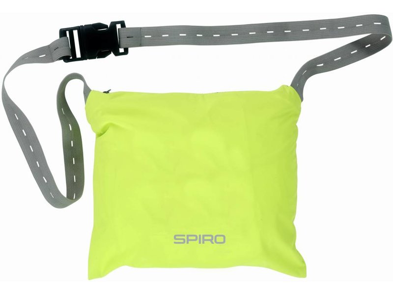 100% polyester (spons 300T) met transparante PU beschermlaag Winddicht en waterafstotend (waterdichte stof: 5.000 mm) Ademend (2.000 g/m² in 24u) en sneldrogend Houdt de huid droog en comfortabel Volledige rits met stormklep 2 zijzakken met rits, achterzak met rits Op te vouwen in riemzak, met riem Manchet met klittenband Verstelbare onderboord Reflecterend SPIRO bedrukt logo Windbeschermende langer achterpand Unisex Geschikt om te borduren en te bedrukken