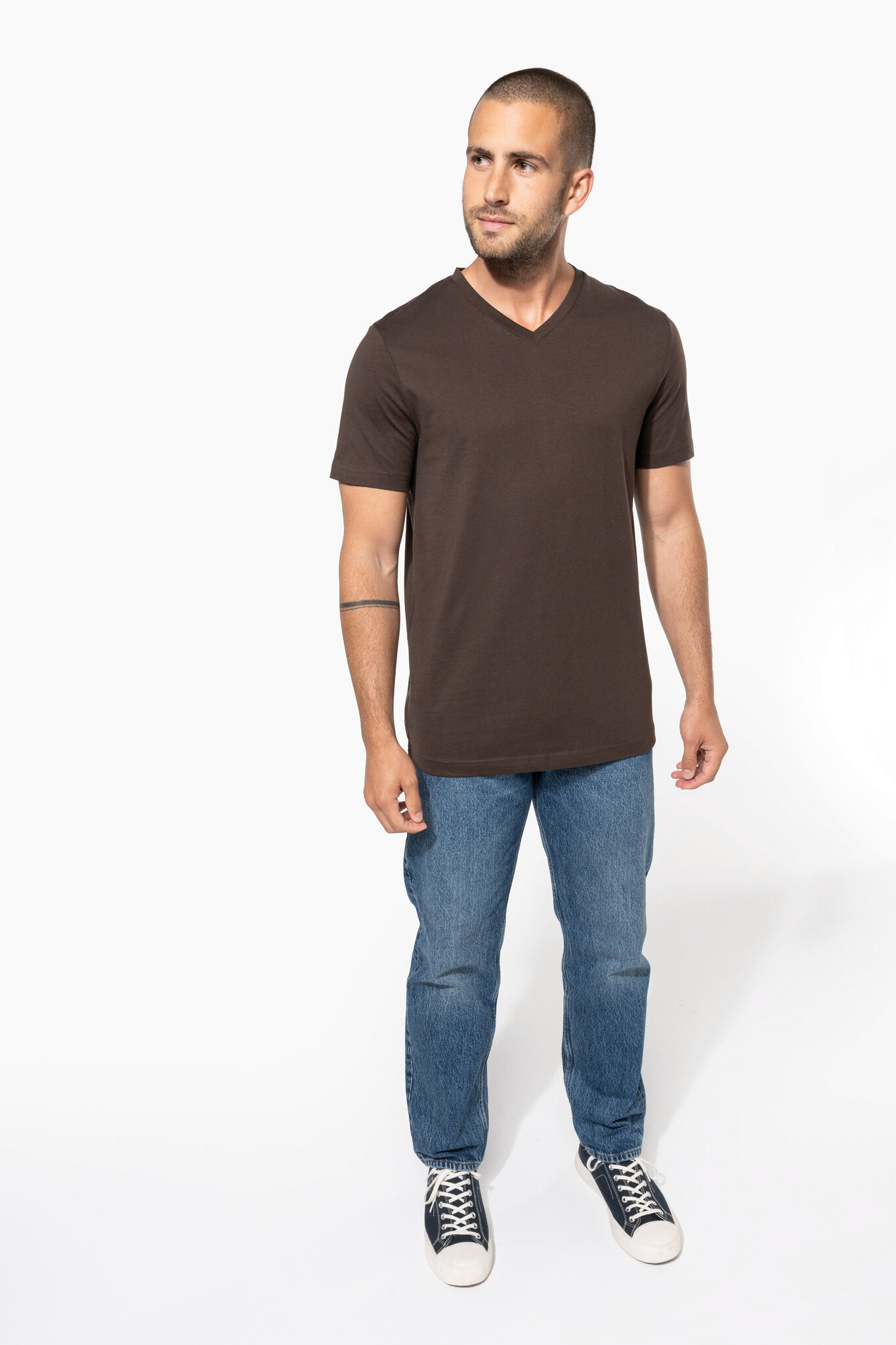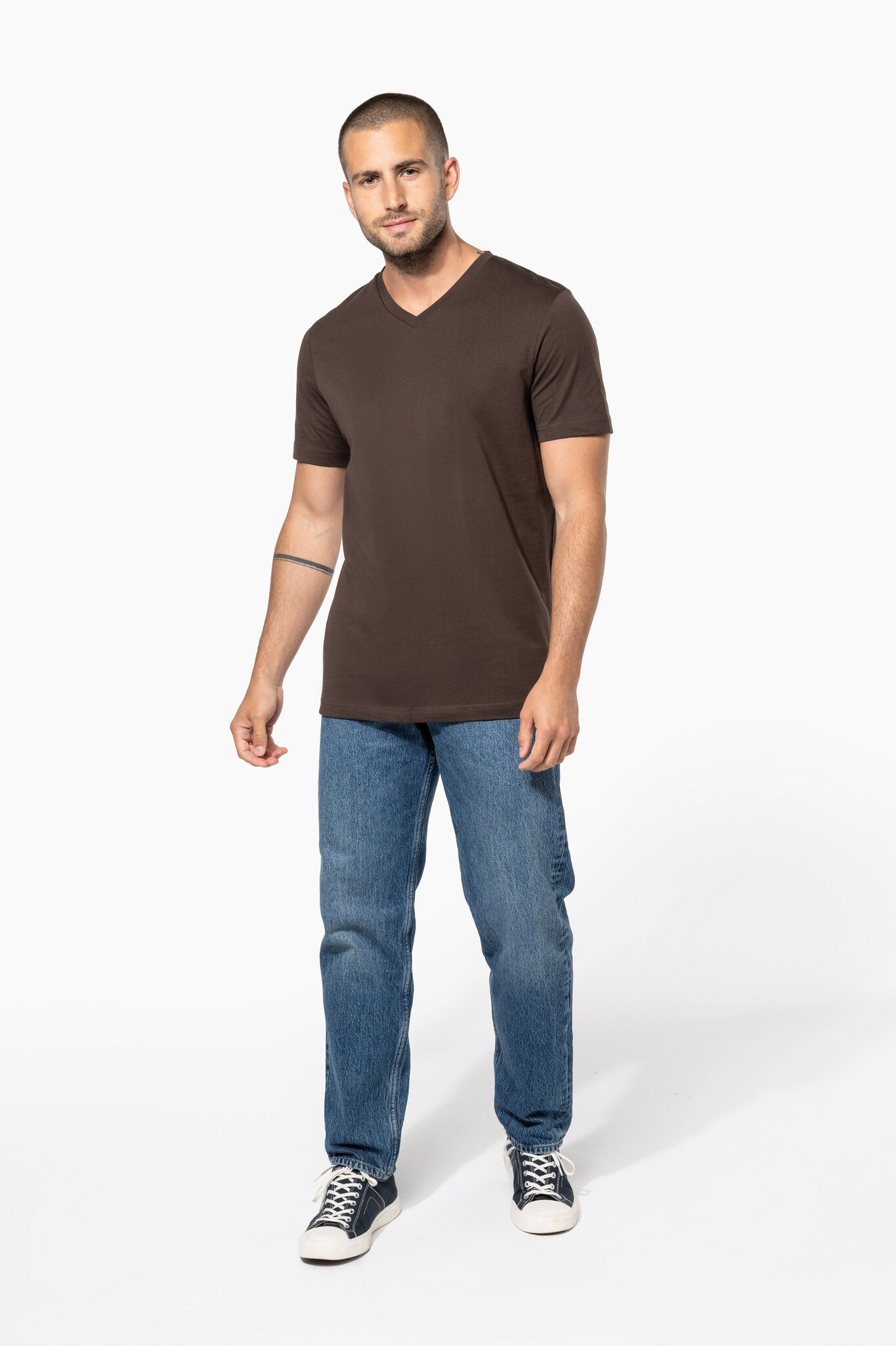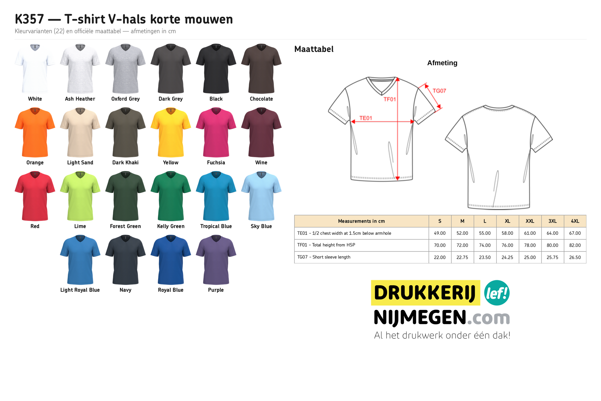 Kariban K357 T-shirt met V-hals en korte mouwen. 100% enzymbehandeld gekamd katoen (180 g/m²), getailleerde snit met dubbele stiksels. OEKO-TEX & PETA gecertificeerd. Beschikbaar in 21 kleuren, maten S-4XL. Ideaal om te bedrukken met logo of eigen ontwerp