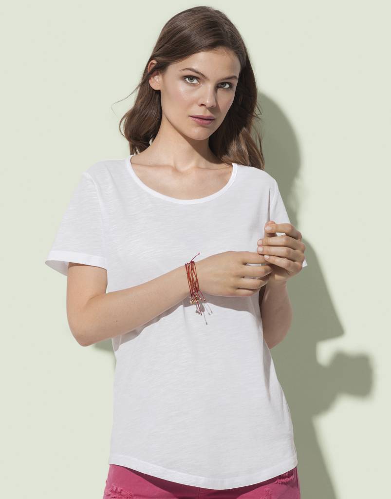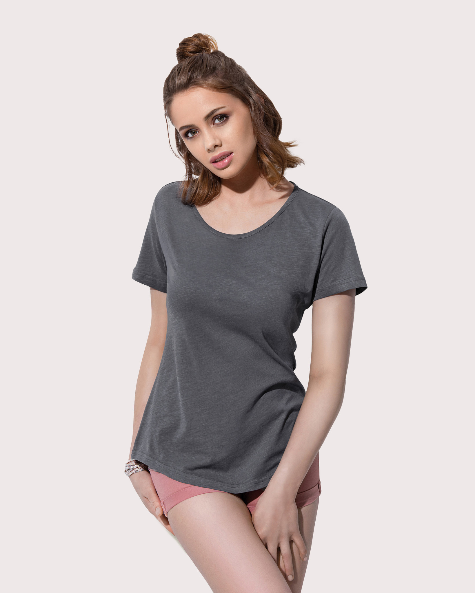 130 g/m² 100% katoen (organisch), ringgesponnen Single jersey van slubgaren voor een getextureerde look Rib kraag Zijnaden.